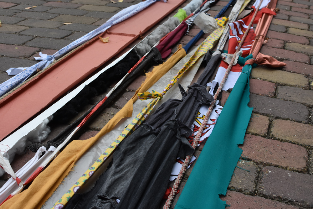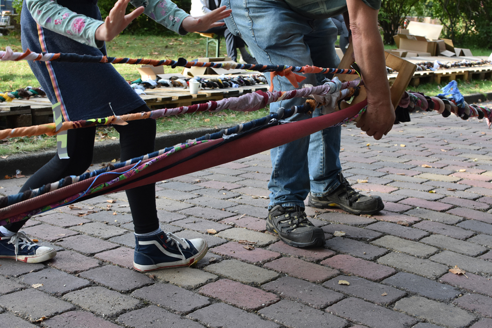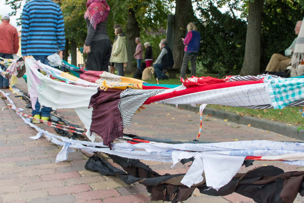 Feuerwehrschlauch, Schiffstaue, Strickband, ein Glockenseil der Dorfkirche, Luftmaschen, Angelsehne, Flatterband, Hundeleinen, Koppeldraht sowie Stränge aus Billardtuch, Schilf, Bettbezügen, Europaflagge, Kleidung, Möbelstoff, Geschirrtüchern, Kittelschürzen, Werkstattlappen, Baufolie, Chemiefaserwolle, Pferdedecke...